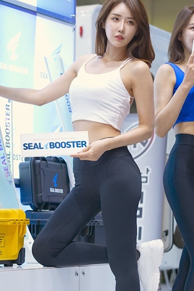 흰 끈 민소매 레깅스 라인 유다연 레이싱모델 Model Yu Dayeon